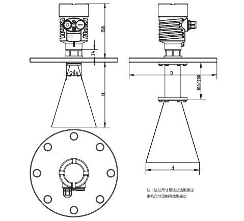 SKD53喇叭天線雷達(dá)物位計(jì)外型尺寸圖