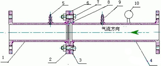 1、 4管路 2、3法蘭盤(pán) 5、9壓差計(jì)接頭 6密封圈