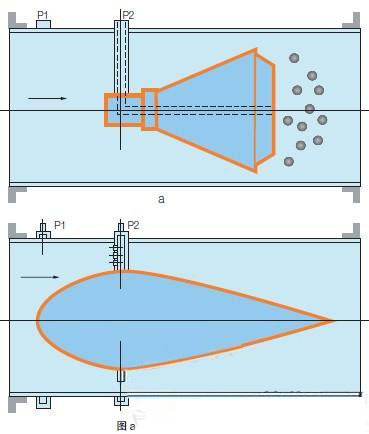 在同一密閉管道內,當壓力降低時,速度會增加,當介質接近錐體時,其壓力為P1,在介質通過錐體的節(jié)流區(qū)時,速度會增加,壓力會降低為P2,如圖一所示,P1和P2都通過V型錐形流量計的取壓口引到差壓變送器上,流速發(fā)生變化時,差壓值會隨之增大或減小。也就是說對于穩(wěn)定流體,流量的大小與差壓平方根成正比。當流速相同時,錐體節(jié)流面積越大,則產生的差壓值也越大。V型錐流量計屬精度、高穩(wěn)定性的新型差壓式流量儀表。