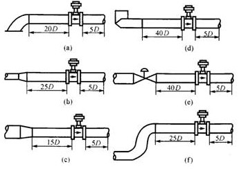 • 為了確保儀表正常、準確運行,傳感器安裝點的上下游必須有一定的直管道,以調(diào)整流場。