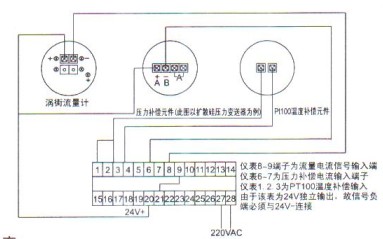 注意:渦街流量計(jì)輸出信號(hào)不能為開方,為比例電流,渦街量程必須設(shè)定為體積流量。