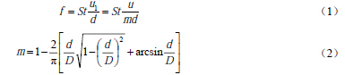 1.引言 渦街流量計(或稱旋渦流量計)是一種基于流體振蕩原理的新型速度式流量儀表。它的輸出信號是與流量成正比的脈沖頻率信號或標準電流信號,可遠距離傳輸,并且輸出信號僅與流量有關(guān),不受流體的溫度、壓力、成分、粘度和密度的影響。它具有量程比寬,結(jié)構(gòu)簡單,無運動件,檢測元件不接觸被測流體,具有測量精度好、應用范圍廣、使用壽命長等特點。因此,渦街流量計自20世紀60年代末誕生以來,發(fā)展異常迅速,許多研究者進行了大量的工作,開發(fā)出了眾多類型的渦街流量計,并大量生產(chǎn)投放市場,像這樣在短短幾年時間內(nèi)就達到從實驗室樣機到批量生產(chǎn)過程的流量計還是僅有的。 然而,在經(jīng)歷了20世紀80~90年代的“渦街熱”以后,渦街流量計的發(fā)展放慢了步伐。由于對這種新型儀表的生產(chǎn)、設計、選型和應用方面的經(jīng)驗不足,面對各行各業(yè)千差萬別的現(xiàn)場和測量對象,有些問題逐步暴露出來,如安裝條件和方式對測量的影響等。對于安裝條件(即各種使用條件下所必須的直管段長度)的要求,不同儀表廠家都會給出一個比較合理的建議值。但是,對于安裝方式(即流量計水平安裝或垂直安裝)給渦街流量計造成的影響,一般都沒有涉及。本文通過相同條件下的實驗研究,定量地討論和比較了水平、垂直兩種安裝方式對渦街流量計測量的影響。 2.渦街流量計測量原理 在流體中垂直于流向插入一根非流線型柱狀物體(即旋渦發(fā)生體),當流速大于一定值時,在柱狀物兩側(cè)將產(chǎn)生兩排旋轉(zhuǎn)方向相反、交替出現(xiàn)的非對稱的旋渦列(即卡門渦街),如圖1所示,通過檢測渦街產(chǎn)生的頻率,根據(jù)有關(guān)的關(guān)系式得到流體的流量。 設旋渦的發(fā)生頻率為f,被測介質(zhì)來流的平均速度為u,旋渦發(fā)生體迎面寬度為d,管道內(nèi)徑為D,根據(jù)卡門渦街原理,有如下關(guān)系式: 式中u1為旋渦發(fā)生體兩側(cè)的平均流速,m/s;St為斯特勞哈爾數(shù),量綱為1;m為旋渦發(fā)生體兩側(cè)弓形面積與管道橫截面面積之比,量綱為1。 管道內(nèi)流體的體積流量qv為: 式中K為渦街流量計的儀表系數(shù),Hz/(m3/h)。 式(3)就是渦街流量計測量的基本關(guān)系式,其中K除與旋渦發(fā)生體、管道的幾何尺寸有關(guān)外,還與斯特勞哈爾數(shù)有關(guān)。斯特勞哈爾數(shù)為無量綱參數(shù),它與旋渦發(fā)生體形狀及雷諾數(shù)有關(guān),在ReD = 2×104 ~ 7×106范圍內(nèi),St可視為常數(shù),這是儀表正常工作范圍。同時可以看到,渦街流量計輸出的脈沖頻率信號不受流體物性和組分變化的影響,即儀表系數(shù)在一定雷諾數(shù)范圍內(nèi)僅與旋渦發(fā)生體及管道的形狀尺寸等有關(guān)。 3. 渦街流量計的安裝方式 在工程實際應用中,渦街流量計通常有如圖2所示的幾種安裝方式[10],其中(a)、(b)、(c)三種方式都屬于水平安裝;(d)則為渦街流量計的垂直安裝。對不同的流體應采用不同的安裝方式。普通液體、氣體、含水量液體的氣體、低溫氣體和液體、含微量固體顆粒的液體和氣體等可采用(a)、(c)、(d)方式安裝;高溫液體、高溫氣體、蒸汽可采用(b)、(c)、(d)方式安裝;濕飽和蒸汽可采用(a)、(c)、(d)方式安裝;液-氣(含微量氣體)、液-固(含微量固體)和液-液兩項流中,如果氣、固相不超出可測量范圍,建議首先采用(d)方式安裝。 4. 實驗及結(jié)果討論 4.1 實驗裝置與過程 實驗裝置結(jié)構(gòu)如圖3所示,水穩(wěn)壓罐為管路提供恒定的水壓,使實驗時流量穩(wěn)定,水流量的大小由調(diào)節(jié)閥來調(diào)節(jié),流量范圍為2~20 m3/h。電磁流量計作為標準流量表給出進入實驗段的水的標準流量值,精度為0.5%。渦街流量計分別按照水平和垂直兩種方式安裝在實驗管路中,它們都具有足夠長的前、后直管段長度,并且其它安裝條件都嚴格按照規(guī)定的要求。渦街流量計的信號通過示波器采集,采樣頻率選用1000 Hz,每組數(shù)據(jù)包含2500點。 4. 2 實驗結(jié)果與分析 分別對在水平和垂直兩種安裝方式時測得的渦街信號進行快速傅里葉變換(FFT),可以得到渦街頻率值,圖4給出了渦街頻率與流量之間的關(guān)系。從圖中可以看出,兩者之間的差別很小。再分別對測得的渦街率與流量做零截距最小二乘擬合,得到水平、垂直安裝的渦街流量計儀表系數(shù)分別為2.5202 Hz/(m3/h)和2.5198 Hz/(m3/h),相對誤差小于0.02%?梢姡诎惭b方式對渦街流量計的測量影響很小,可以忽略。 為了進一步研究渦街流量計安裝方式的影響,本文還比較了在水平和垂直兩種方式下的渦街信號的幅度。圖5給出了渦街信號幅度與流量之間的關(guān)系,可以看出信號幅度都與流量成近似二次方關(guān)系,在相同流量下,信號幅度基本上相等,這說明渦街流量計安裝方式對其信號幅度影響很小,也即旋渦的能量(正比于幅度的平方)幾乎不受影響。但是,仔細比較可以發(fā)現(xiàn),渦街流量計水平安裝時的信號幅度略大于垂直安裝的情況,這里可定性地理解為,當渦街流量計垂直安裝時部分旋渦能量因為克服重力而耗散,使得渦街流量計傳感器感測到的渦街能量變少,從而造成信號幅度減小。