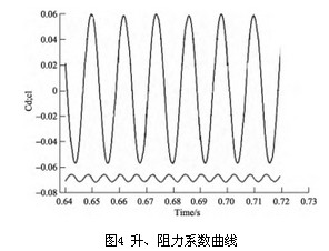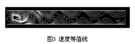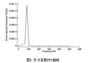 3.2 仿真參數(shù)設(shè)置 在FLUENT中,三維渦街流場(chǎng)參數(shù)設(shè)置如下: 1)流體:空氣(air); 2)湍流模型:Renormalization-group(RNG)k-ε模型; 3)邊界條件 ①流速入口邊界:根據(jù)需要設(shè)置不同流速、湍流動(dòng)能和耗散率; ②壓力出口邊界:零壓; 4)求解器:基于壓力的三維雙精度瞬態(tài)求解器; 5)數(shù)值計(jì)算過(guò)程:SIMPLE算法。 3.3 升、阻力變化頻率的計(jì)算結(jié)果及分析 圖3所示速度等值。三維渦街流場(chǎng)在夾角為0°,入口流速為5m/s的情況下的速度等值線(xiàn)圖。