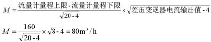 所以該差壓式流量計當(dāng)輸出電流為8mA時,流量是80m3/h。