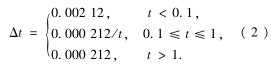 由于流速不斷增大,考妞采用變時(shí)間步長的方式以提高迭代過程的經(jīng)濟(jì)性,時(shí)間步長△t與時(shí)刻t采用式(1)的關(guān)系式:
