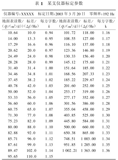 式中,△?為標差;?i為測量頻率值;?0為零頻率。然后通過查表得到每方字數(shù)即可求得地面流量值: