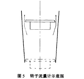 轉(zhuǎn)子流量計(jì)的原理如圖5所示,為一微呈倒錐形玻璃管與轉(zhuǎn)子組成,由于流體穿過(guò)轉(zhuǎn)子與壁的環(huán)隙時(shí)速度增大造成轉(zhuǎn)子下面與上面的壓差使轉(zhuǎn)子上浮。在用柏努利方程推導(dǎo)時(shí)先忽略了流體穿過(guò)環(huán)隙的阻力,然后引人了涉及轉(zhuǎn)子形狀和阻力損失(即粘度的影響)的校正系數(shù)C,,即